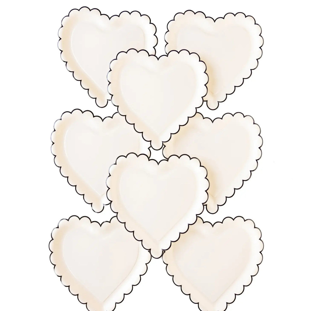 Treat your sweetheart to a sweetheart-shaped plate! Our Scalloped Heart Paper Plate has a classic black and white design that will bring fun and flair to any Valentine’s Day celebration. Sweet and simple – no frills, no fuss, just pure love. • includes 8 heart shaped paper plates • 10" x. 9.5" inches