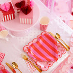 This playful and charming Scalloped Striped Heart Plate will add a touch of love to any Valentine's Day celebration. With its unique scalloped shape and striped design, it's perfect for serving sweet treats or displaying decorative items. Show your love in a whimsical and fun way with this heart-shaped plate!