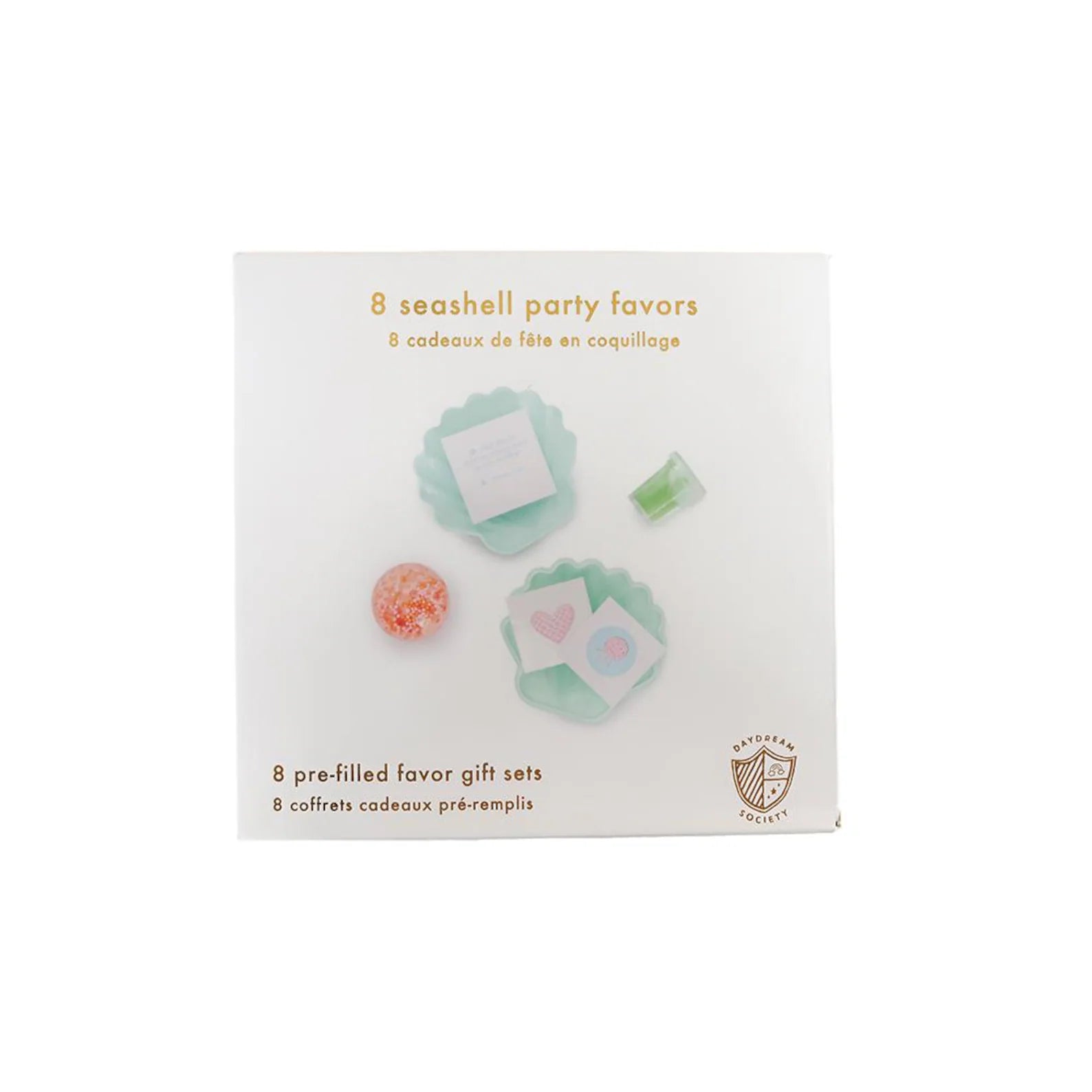 Includes set of 8 pre-filled shell favors
