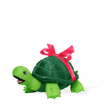 Flaunting a pristinely elegant deep-green velour patterned shell atop a dramatic chartreuse chenille body, Skipperdee is ready to join Eloise on all of her hair-raising adventures! As a tribute to the pink splashes of color in Eloise art, we’ve dressed up Skipperdee with an equally bright pink satin ribbon. With expressive embroidered eyes, you will “love, love, love” our Skipperdee Turtle!