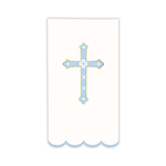 Add refinement to your party table with our Sky Blue Cross Guest Towels. Perfect for baby showers, first communions, and baptisms, these elegant towels pair beautifully with our Dove Sky Blue Small Plates to wow your guests.