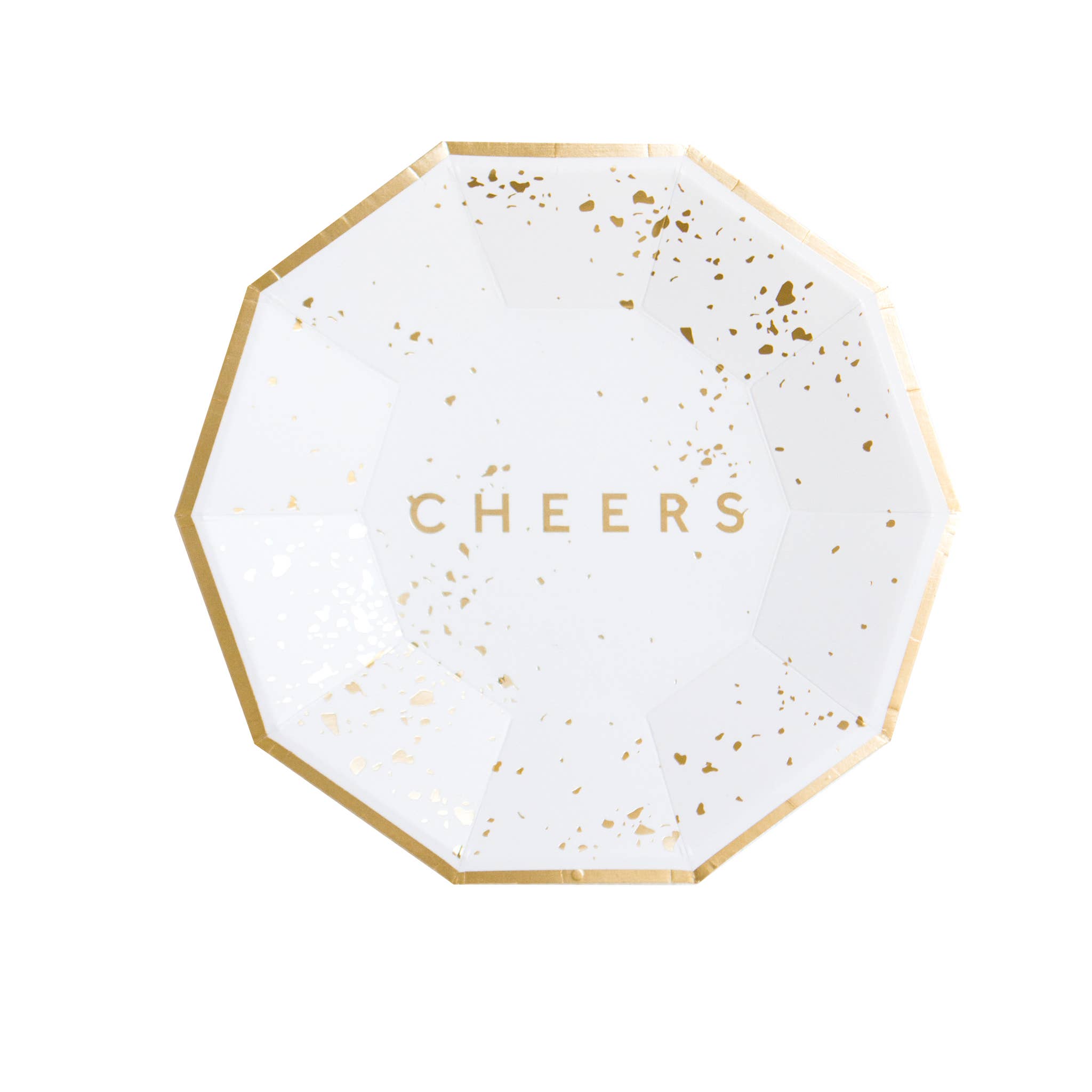 Beautifully understated with 'Cheers' in gold foil, our elegant small party plates elevate the everyday celebration. Pair with our gorgeous selection of cocktail napkins for all of your cocktail shindigs and soirées all year around.