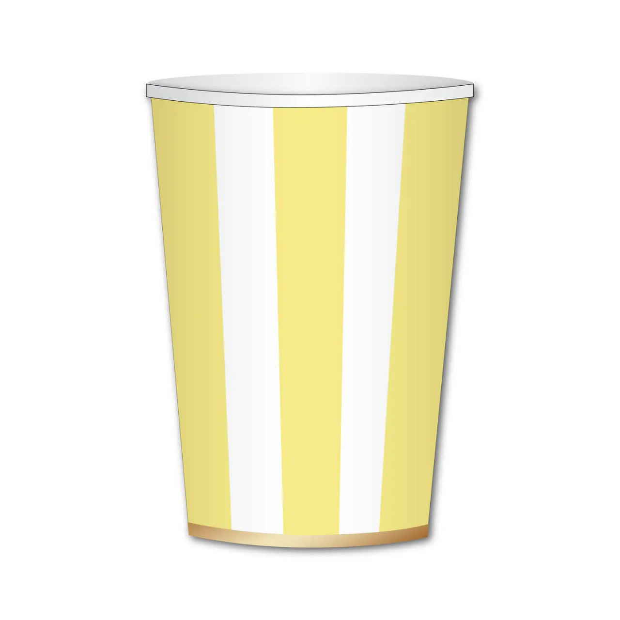 Experience the ultimate in sophistication with our Soleil Yellow Cabana Stripe Cups from the Bonjour Fête Signature Collection. Indulge in the luxury of these high-quality cups, adorned with a chic wide stripe pattern. Perfect for any occasion, including baby showers, summer beach parties, back-to-school celebrations, and so much more. > Includes 8 party cups > Size: 12 oz. > Not microwave safe > FSC-certified paper, eco-conscious materials > Inspired by the French, Designed in America by Bonjour Fête