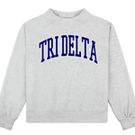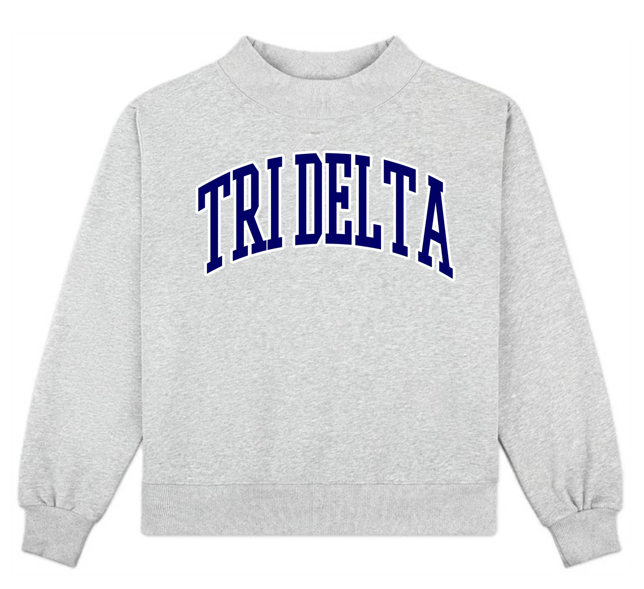 Your new go-to just dropped. The Campus Mock Neck is thatsweatshirt—relaxed, collegiate, and cool without trying too hard. With its bold embroidered sorority nickname and structured neckline, this crew is made for walking to class, lounging at the house, or hyping your sisters before chapter. It’s giving oversized, lived-in, and totally iconic energy.