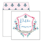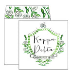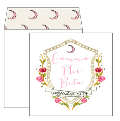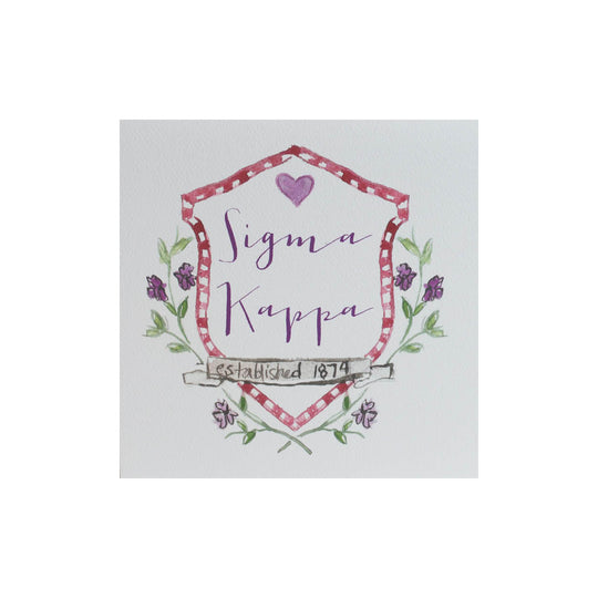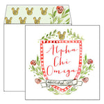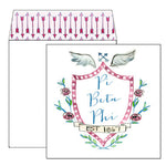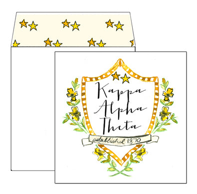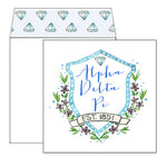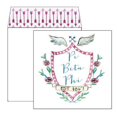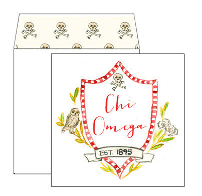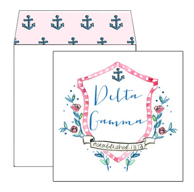 The perfect way to write a special, keepsake note to your new pledge, active member, alumni, or big/lil sis. Our folded notecard features a hand-drawn water colored motif design that incorporates sorority symbols and mascots in sorority colors. Printed on premium felted paper and an envelope lined with corresponding custom hand-drawn liner.