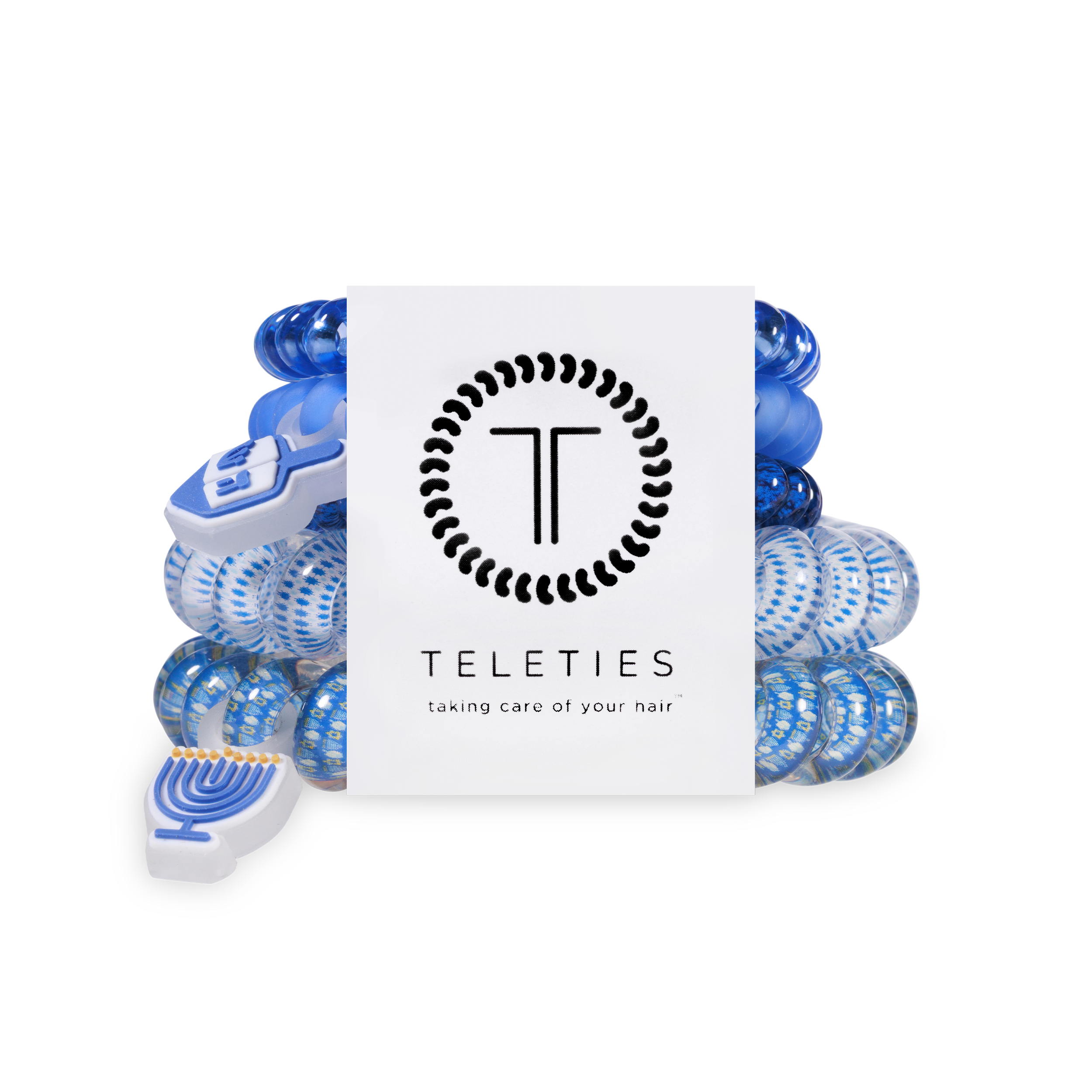 Hold your hair in place with ease and style! Drop It Like a Dreidel Mix Pack Hair Ties in Blue and White offer a strong grip without damage, doubling as a stylish bracelet when not in use. Your new favorite hair essentials all year round.