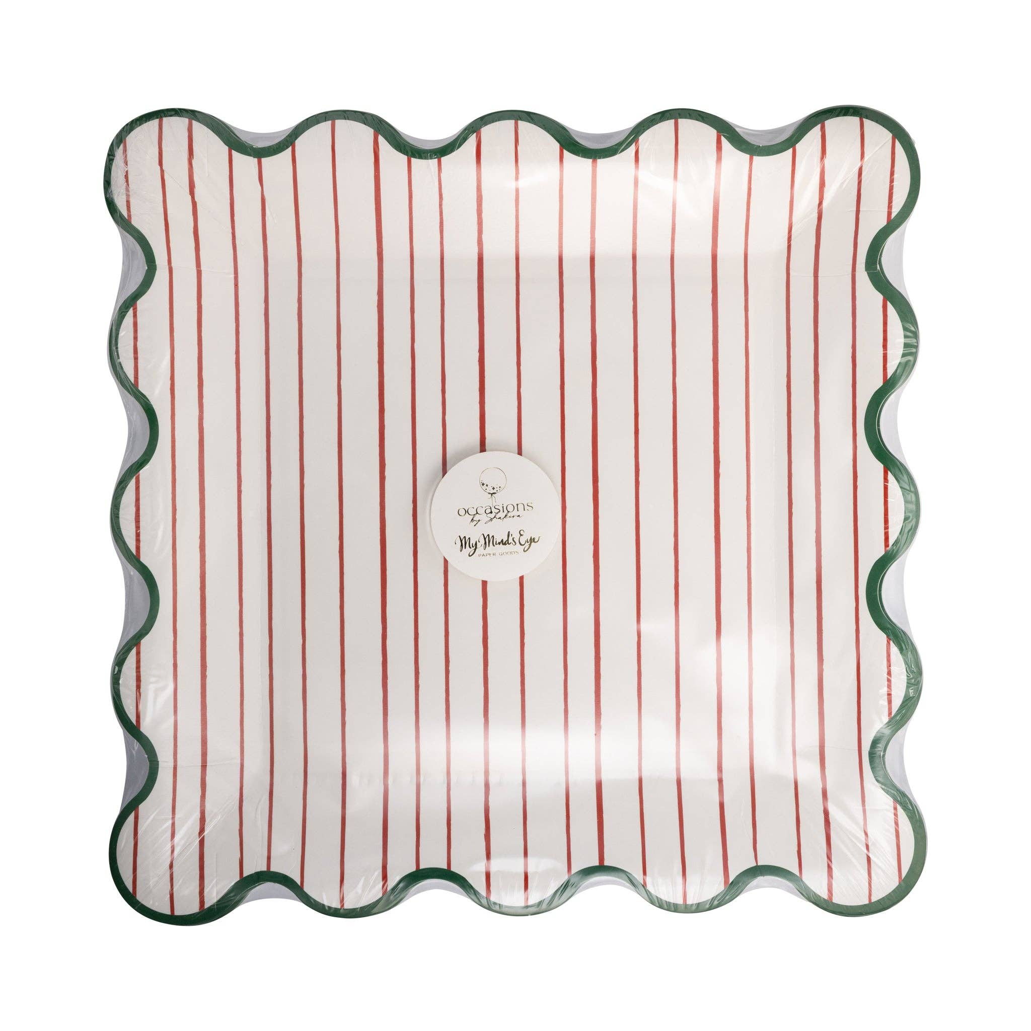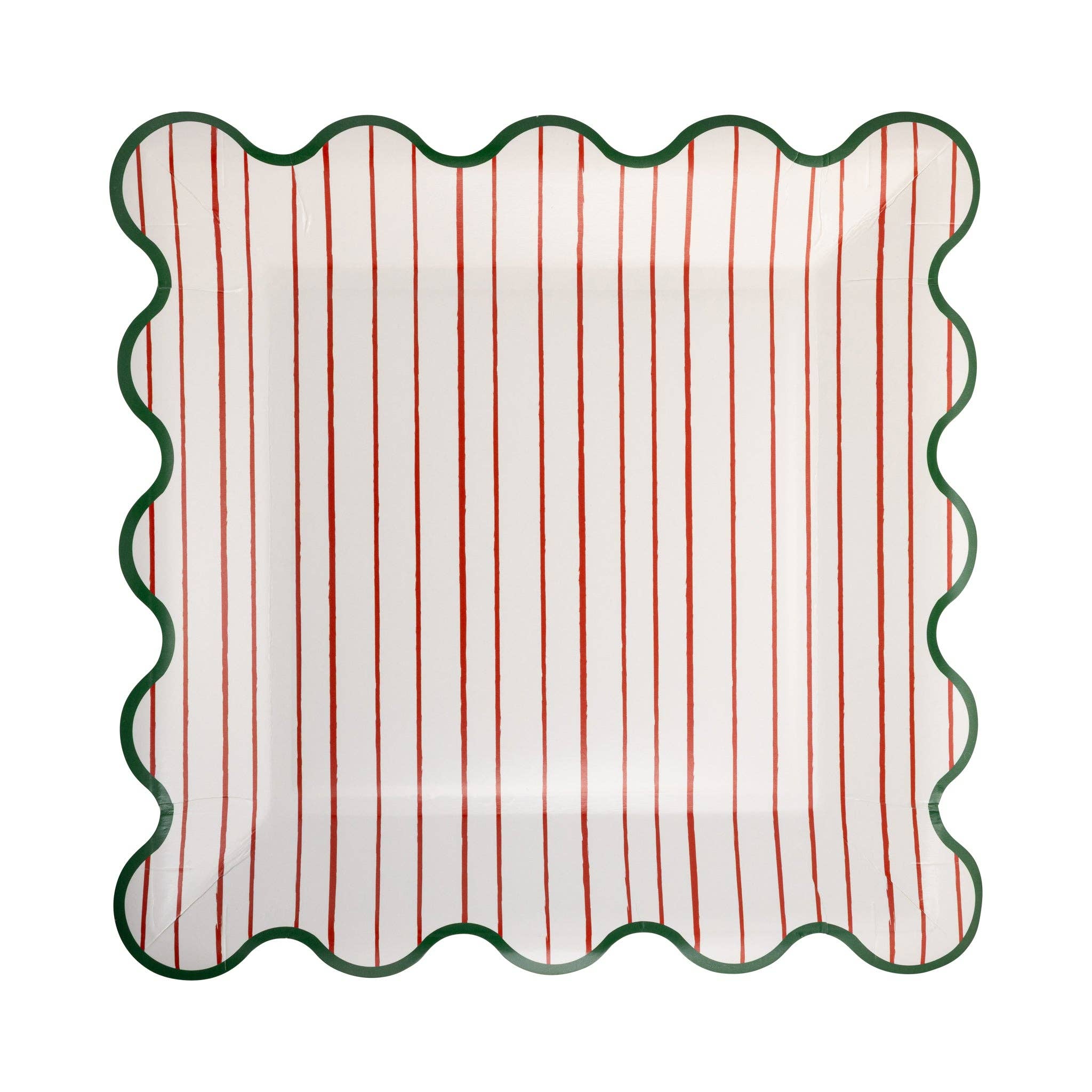 Get your holiday celebration sparkling with our Striped Plate. Featuring festive stripes in cheerful colors, these plates coordinate perfectly for a charming Christmas party setup.