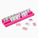 Crafted for players who love color as much as they love the game, this set features bold Sunburst tiles, bright pink plastic racks, and a sturdy, water-resistant travel bag designed to keep everything safe no matter where you go. Pair it with our water-resistant International Mahjong Card or Aquajong for endless on-the-go play.