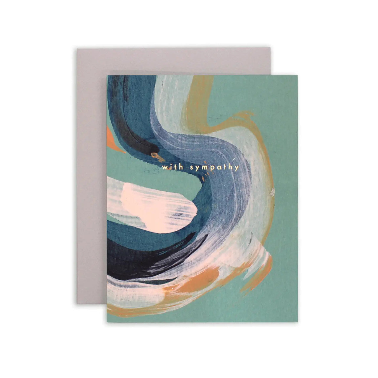 Hand-painted folded card with copper foil. Each card has a unique abstract design. Paired with a patterned envelope. Hand-painted and foil stamped in our Iowa based studio. Card size: 4.25 x 5.5"