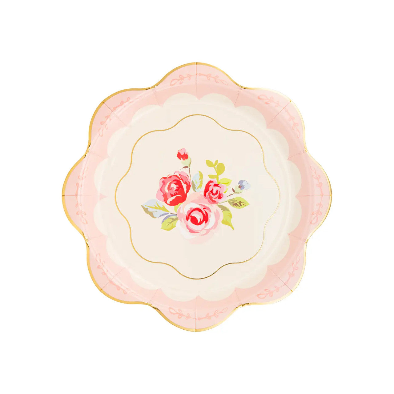 Get ready to host a fanciful tea party with our gorgeous plates! Adorned with beautiful roses and a touch of gold foil, these scalloped paper plates will add an elegant touch to your event. Perfect for tea lovers and those who appreciate a bit of whimsy. • includes 12 paper plates • 9 x 9 inches • gold foil