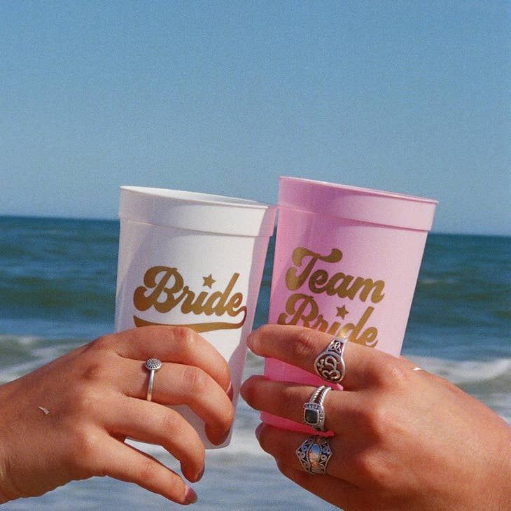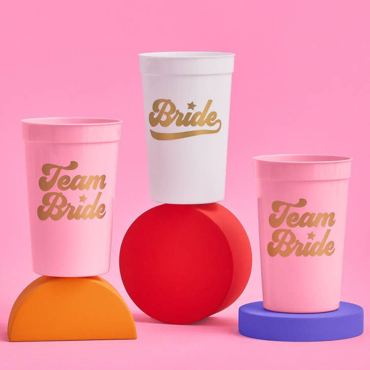 Go team, go ✨|| Go team, go! Show your team spirit with these 16 pack of stadium sized cups - perfect for day drinking at the pool, beach or where ever it is you find yourself day drinking. #TeamBride Fits 16oz of your favorite bev! 16 stadium cups with gold print 100% dishwasher safe. Use again and again!