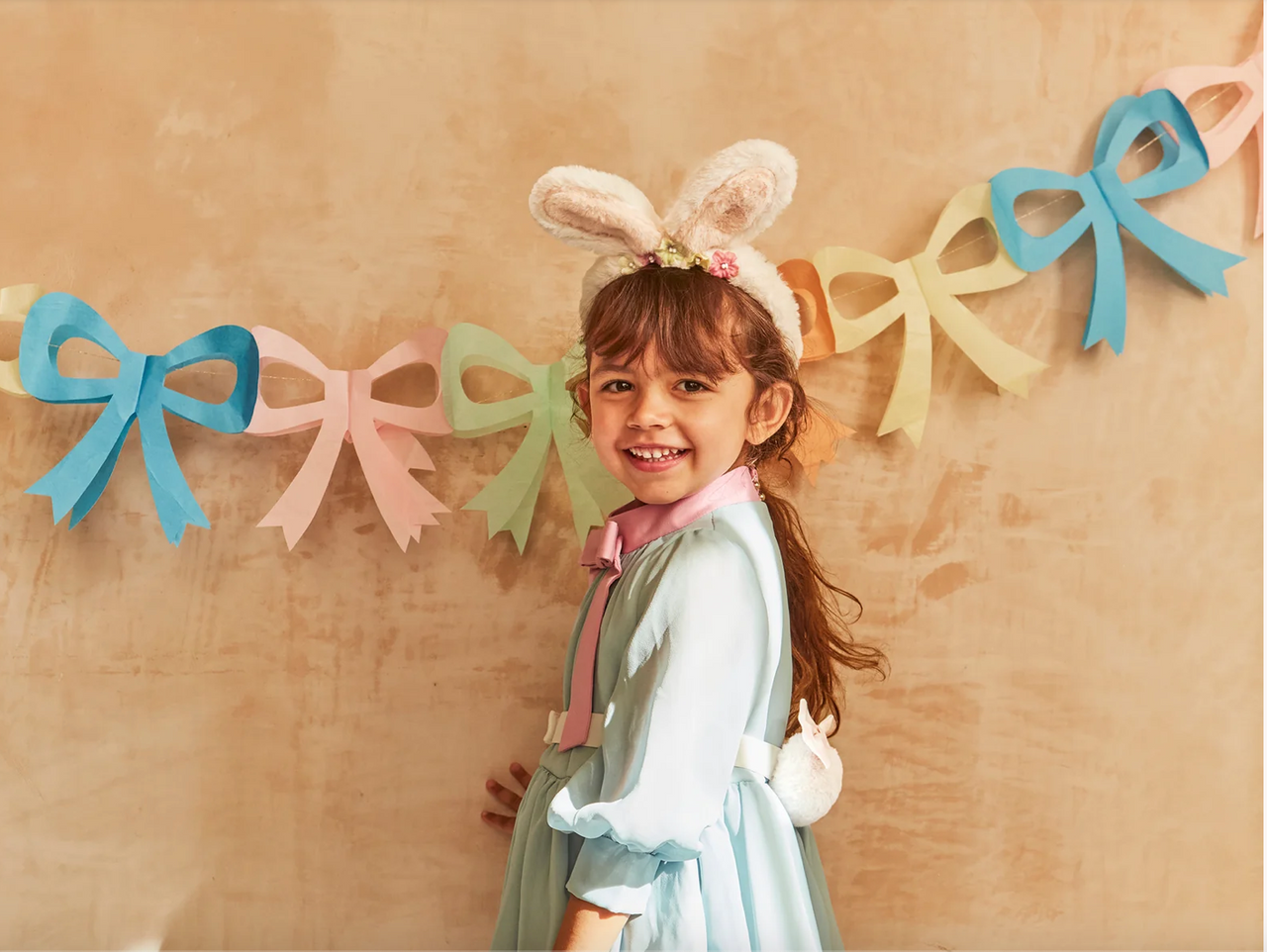 The soft color palette of these on-trend bows is perfect for Easter or any special celebration where you want a touch of springtime beauty. Hang the garland on the party table, on the wall, in doorways or in the porch. The concertina design is super easy to open, hang up, and pack away for use year after year.