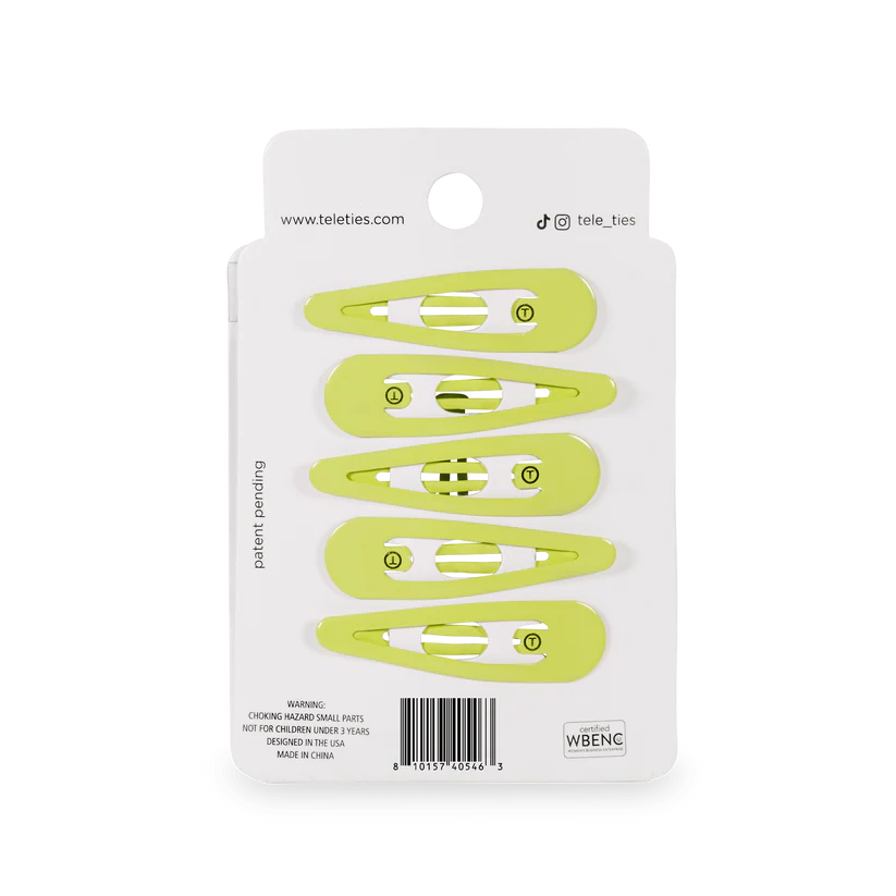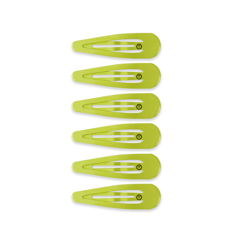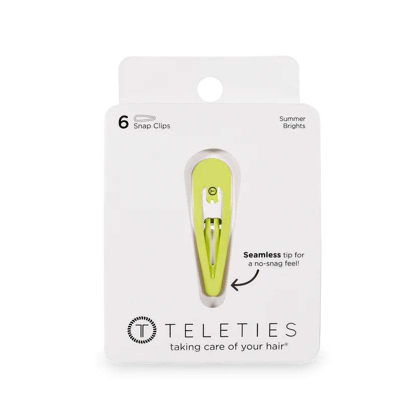 TELETIES Summer Brights snap clips in Neon Green offer a secure seamless tip for a no snag feel. Perfect for all hair types, these stylish barrettes provide a gentle yet firm hold, whether you're styling or simply pulling back strands. Available in a range of colors, TELETIES Snap Clips combine functionality with flair, ensuring your hair stays put all day long.