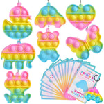 Value Pack: This happy valentines key chains set includes 28 colorful mini pop it fidgets in pink, yellow and blue. The mini gifts valentines day prizes also come with 28 valentine's cards. The mini fidget toys comes in 7 different shapes, including the elephant, duck, butterfly, heart, bear, car,and frog. Cute Designs: the 28 pieces of cards comes in 7 different designs to match with the shapes of the mini pop it party favors. There are also holes on the top right corners of the cards for you to place mini pop it keychains. Safety first: The valentines day pop its are guaranteed to provide a safe and secure shopping experience. We strive to provide the highest quality of products and guarantee that all of our products have been carefully inspected for safety and quality assurance. All of our products are backed by our 100% satisfaction guarantee, so you can shop with confidence knowing that your purchase is safe and secure! Package Dimensions:8.7*2.8*8.3inch