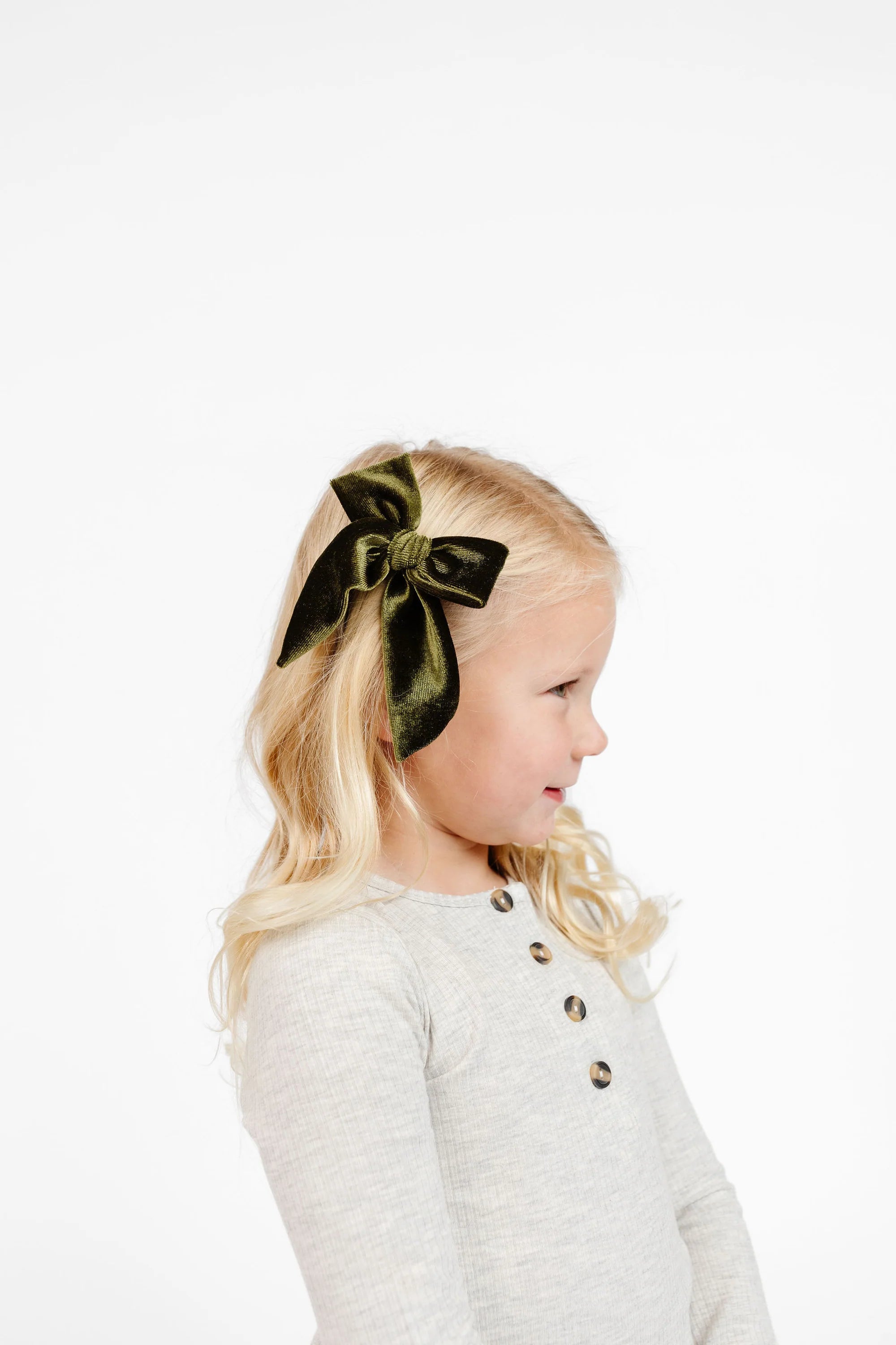 Our Velvet Bow is soft, plush, and perfectly polished. Made from luxe velvet with a beautiful sheen, it adds a touch of elegance to any outfit. Lightweight and gentle, it's ideal for newborns and toddlers—sweet enough for every day, special enough for the moments that matter.