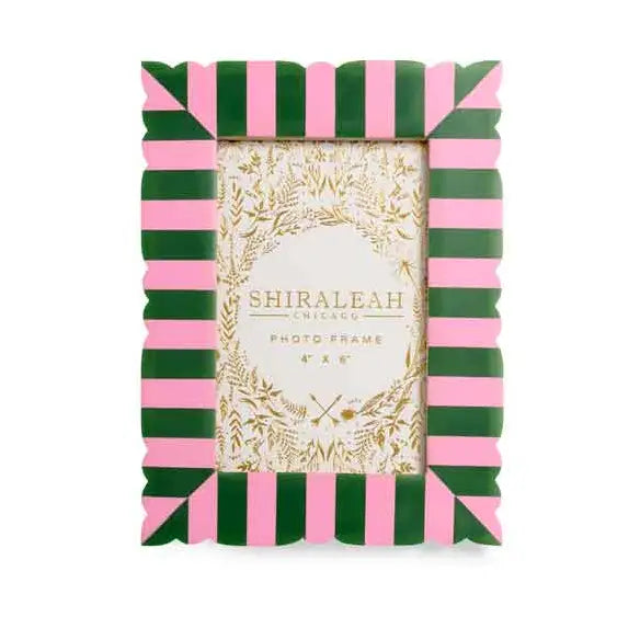 Measures L 8" x W 6"Made from resin, Add a pop of playful charm to your space with the Viva 4" x 6" Cut Edge Picture Frame. Featuring bold, candy-colored stripes and a wavy edge detail, this frame is anything but ordinary. Whether you choose the vibrant red and pink combo or a fun mix of green and blue, each one delivers a dose of cheerful personality. Designed to stand out, this frame is a celebration of color and whimsy for your favorite memories.