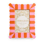 Measures L 8" x W 6"Made from resin, Bring bold energy to your space with the Viva 4" x 6" Scalloped Picture Frame. Featuring playful scalloped edges and candy-colored pink and orange stripes, this frame is a cheerful twist on classic design. Made from durable resin, it’s lightweight yet sturdy—perfect for desks, nightstands, or gallery walls that need a little extra oomph. It’s a fun and festive way to frame your favorite moments.