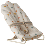With this babysitter, it is easy to put your little friends to sleep. The base is made of metal and covered by the most lovely fabric. The chair fits my sized rabbits and baby mice perfectly.