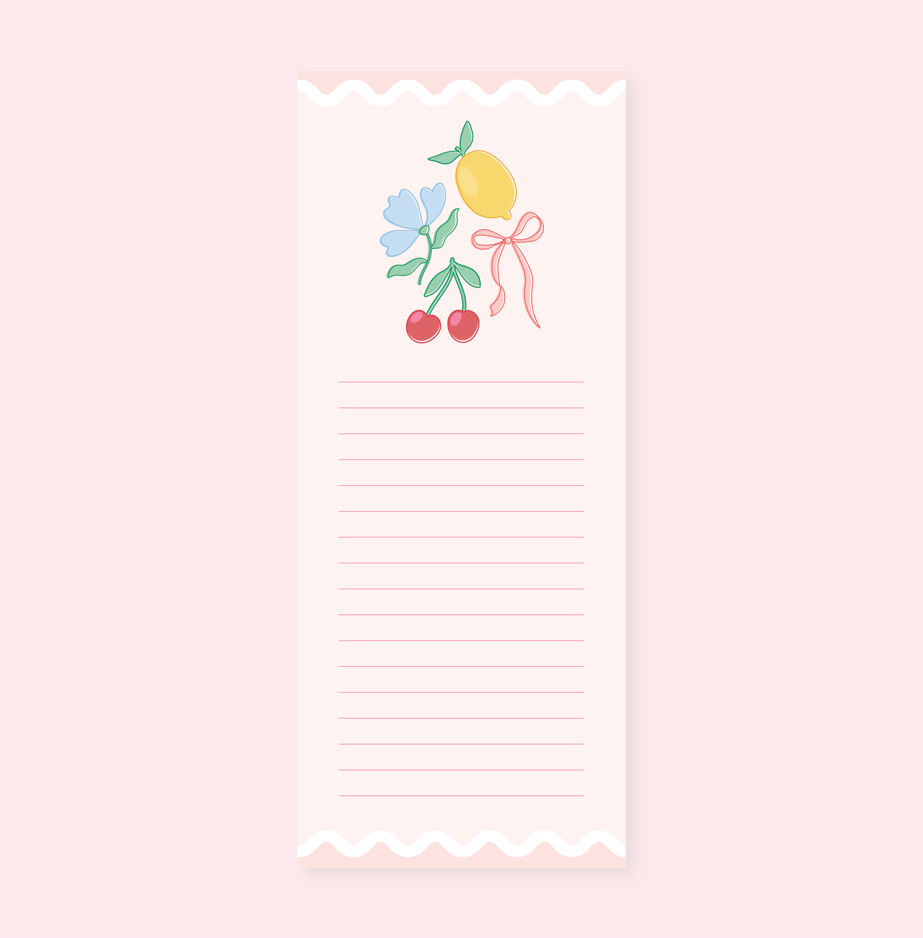 This Wavy Summer Fruit List Notepad is perfect for jotting down notes, to-do lists, or reminders, adding a touch of sweetness to your everyday tasks.