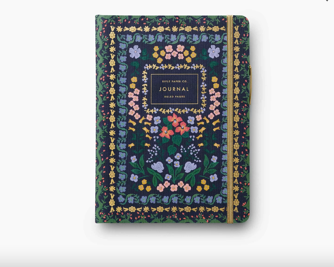 Designed for note takers and journalers, this hardcover journal comes with a gold pen with black ink, and features 144 ruled pages, an elastic band, and a pocket for extra storage