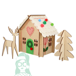 - A wooden gingerbread style house, made with 6 pieces of wood